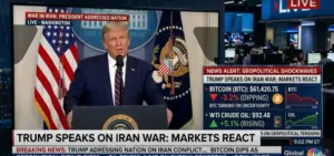 Harga Bitcoin melemah sementara harga minyak melonjak setelah Presiden AS Donald Trump menyampaikan pidato terkait konflik dengan Iran. Dalam pernyataannya,